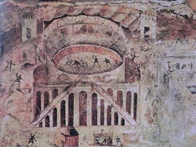 image Corría el año 59 dC. y Roma se despertaba con el sonido de la lira de Nerón. Los habitantes de Pompeya y de Nuocera, dos pequeñas ciudades costeras del Sur de Italia, se disponían a disfrutar de un apasionante día de luchas de gladiadores en el anfiteatro de la primera. Eran unos juegos sufragados por un rico político a quien recientemente habían expulsado del Senado. Sin embargo, ¿qué más dá quién pague los juegos mientras sean de nivel?. Esto es lo que debían pensar los de Nuocera mientras se dirigían tranquilamente hacia Pompeya, imaginándose ya a retiarios y mirmilones soltándose golpes y tajos sin piedad, mientras los gritos y vítores de cerca de 20.000 espectadores animaban a su favorito.